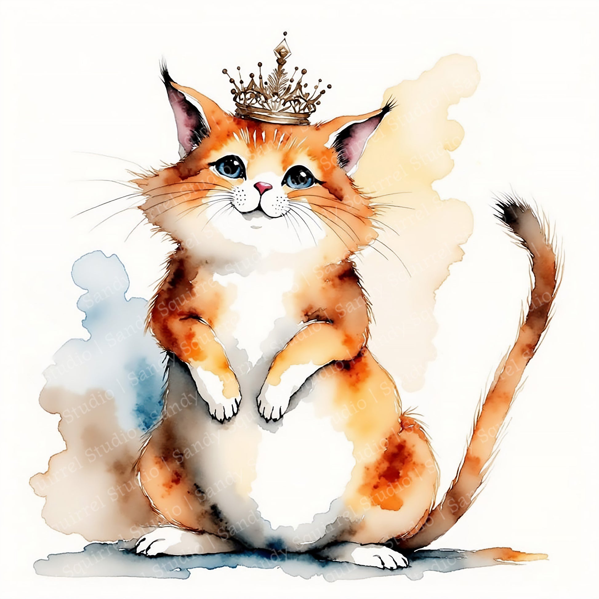 Pretty Princess Watercolor Style Cat Tiara Greeting Card