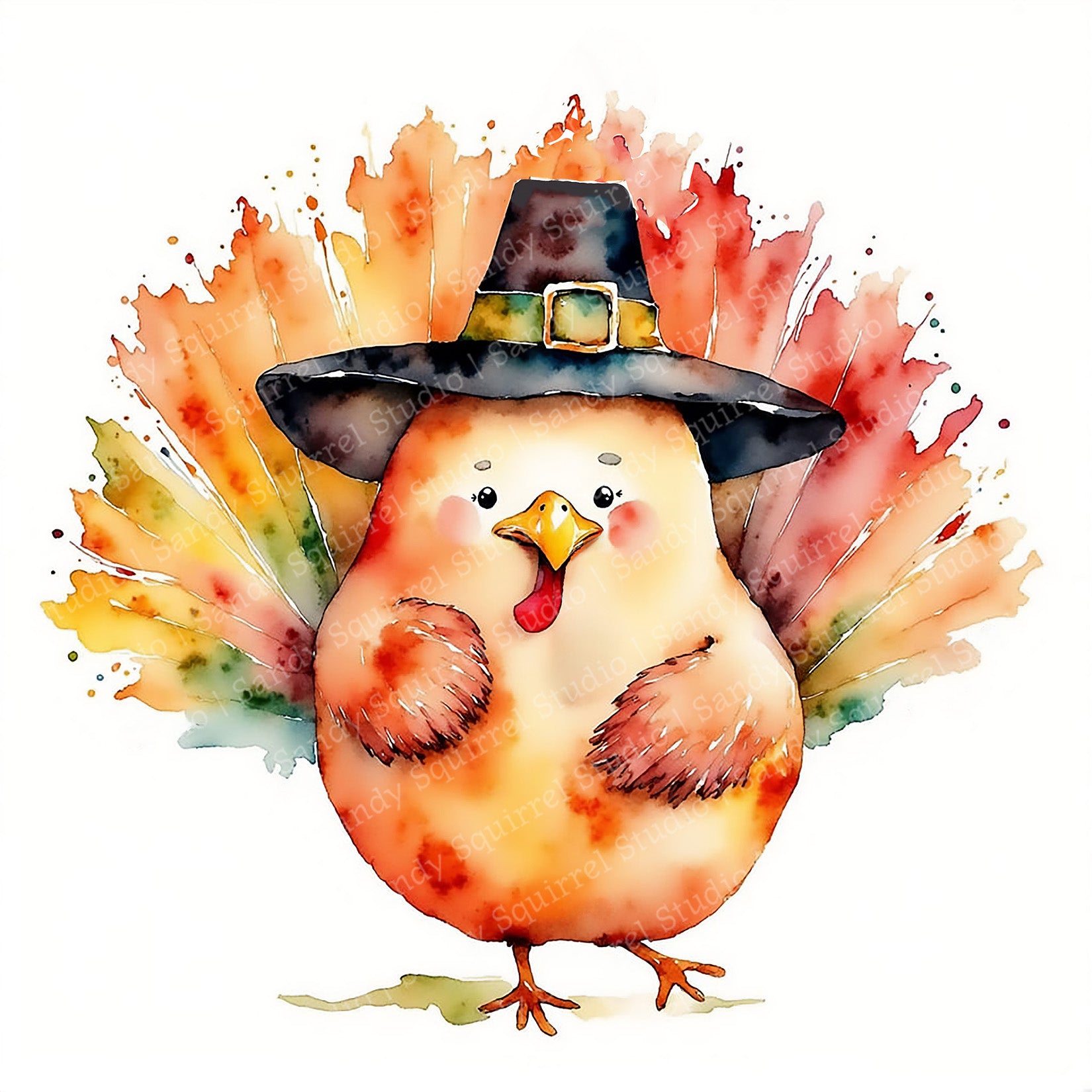 Tom Tom Watercolor Style Thanksgiving Turkey Art